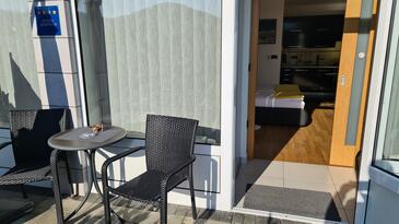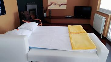 Appartamento può accogliere 4 ospiti. I letti sono disposti nelle camere da letto che sono 1, e nella camera di soggiorno, su 80m2. Gli ospiti hanno a disposizione il proprio balcone per godere delle calde serate estive.