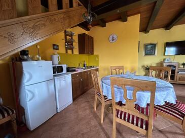 Casa può accogliere 6 ospiti. I letti sono disposti nelle camere da letto che sono 2, e nella camera di soggiorno, su 77m2. Gli ospiti hanno a disposizione il proprio terrazzo per godere nelle calde serate estive. Per il piacere totale e il relax c'è il barbecue privato solo per gli ospiti di quest'alloggio. Nell'unità di alloggio si possono portare gli animali domestici senza alcun pagamento supplementare.