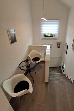 Casa può accogliere 6 ospiti. I letti sono disposti nelle camere da letto che sono 2, e nella camera di soggiorno, su 81m2. Gli ospiti hanno a disposizione il proprio terrazzo per godere nelle calde serate estive. Per il piacere totale e il relax c'è il barbecue privato solo per gli ospiti di quest'alloggio. Nell'unità di alloggio si possono portare gli animali domestici senza alcun pagamento supplementare.
